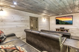 If you need to wind down and need a place to take a break, you can kick back and watch your favorite movies in the dedicated theater with 75” Roku TV.